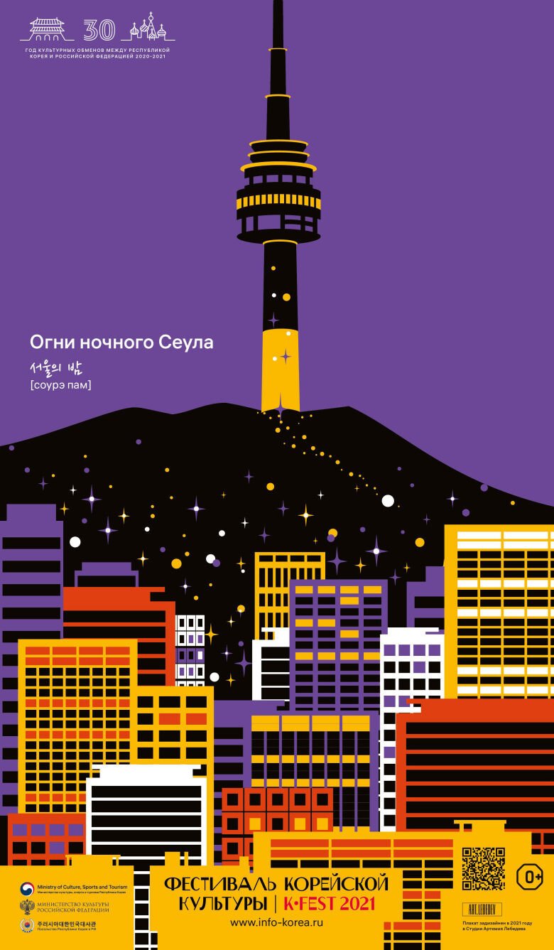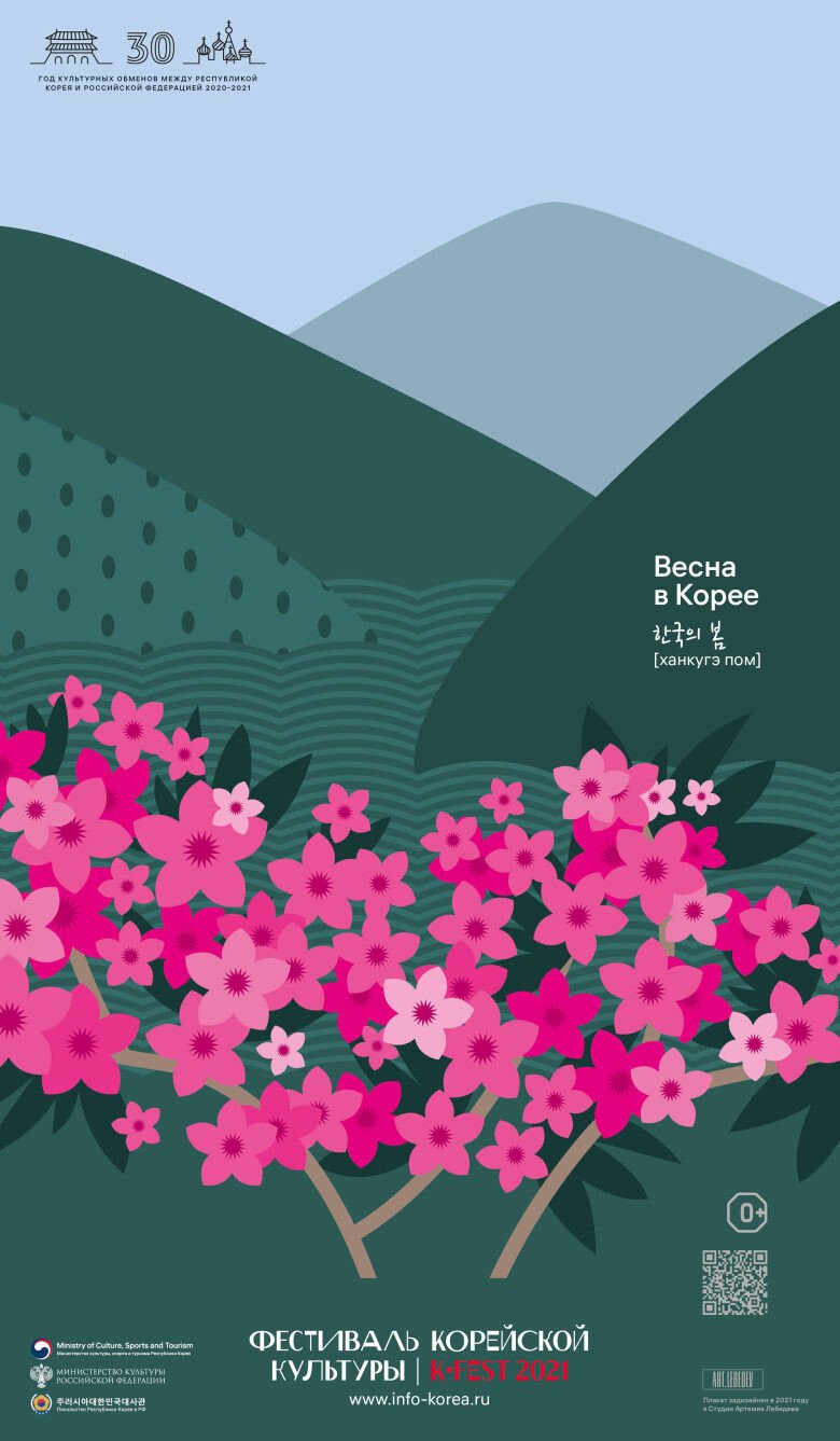 해당 포스터는 주러시아 한국문화원과 한국관광공사 모스크바 지사가 공동으로 개최하는 K-FEST 2021의 홍보물입니다. 한국과 러시아는 양국의 수교 30주년을 기념해서 2020~2021년을 한러 문화교류의 해로 선포했는데요. 이를 기념하기 위해 5월과 6월 두 달에 걸쳐 K-FEST2021을 진행 중인 것.