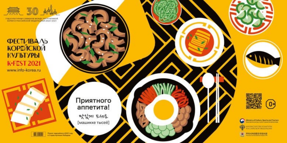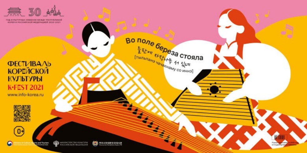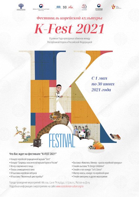 해당 포스터는 주러시아 한국문화원과 한국관광공사 모스크바 지사가 공동으로 개최하는 K-FEST 2021의 홍보물입니다. 한국과 러시아는 양국의 수교 30주년을 기념해서 2020~2021년을 한러 문화교류의 해로 선포했는데요. 이를 기념하기 위해 5월과 6월 두 달에 걸쳐 K-FEST2021을 진행 중인 것.