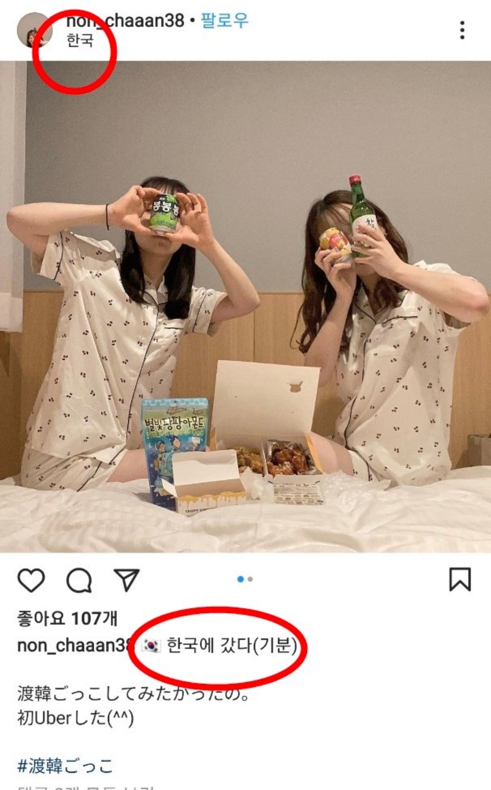 실제로 인스타그램에 #渡韓ごっこ라는 해시태그를 검색하면 일본의 Z세대가 게시한 한국여행놀이 인증샷이 끊임없이 이어집니다. 해당 인증샷에는 치킨, 떡볶이, 김밥, 라면 등 한국 음식과 소주, 사이다와 같은 한국 음료들이 보입니다.