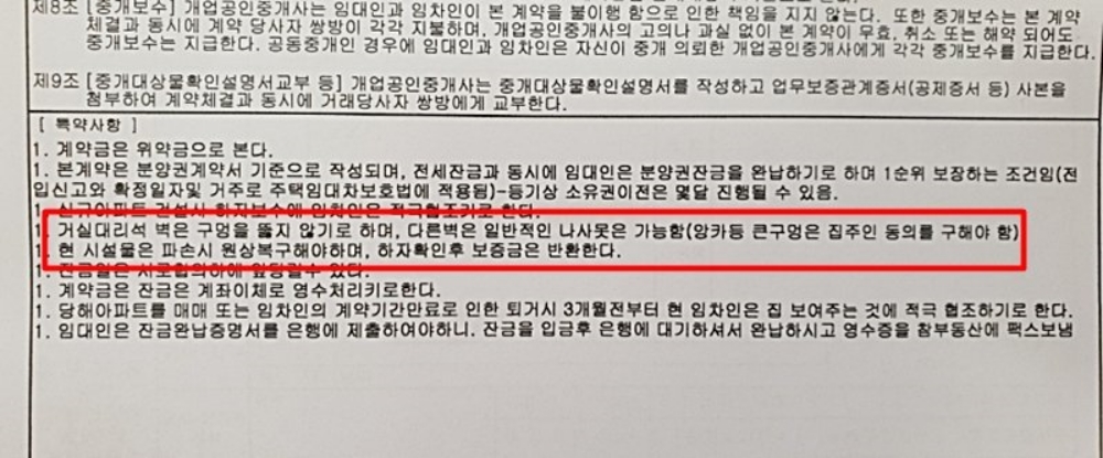 사실 A씨처럼 특수한 사례 외에도 집주인과 세입자 사이 원상복구의 범위를 두고 발생하는 분쟁은 비일비재합니다. 민법에 명시된 범위가 구체적이지 않다보니 논란의 여지가 많은 것인데, '통상적 못자국'은 괜찮지만 '지난친 못질 흔적'은 안된다는 규정 등이 문제가 되지요. 때문에 계약을 진행할 때 미리 계약서상 특약사항으로 '에어컨 설치 구멍'이나 '못질', '커튼설치', '애완동물' 등과 관련한 구체적인 내용을 제시하는 것이 좋습니다.