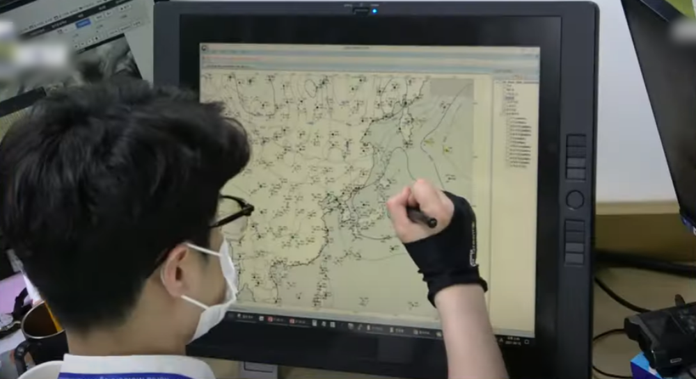 이런 상황에서 예보관들은 교대 근무를 이어가면서 24시간 예보국을 지킵니다. 최근 예능 프로 '아무튼출근'에는 5년차 기상청 예보관 전일봉 씨가 출연해서 예보관의 근무 일상을 공개했는데요. 오전부터 오후까지 세 차례에 걸친 회의를 진행하는데다 3시간마다 나오는 일기예보를 위해 기상도를 직접 그리기까지 하면서 바쁜 시간을 보냈습니다.