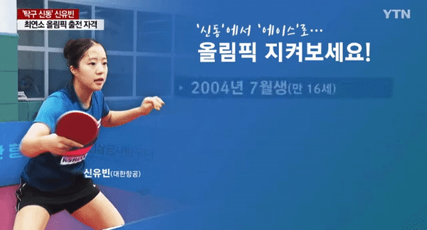 2004년 7월 5일생인 신유빈은 만 14세 11개월 16일의 나이로 국가대표가 되면서 남녀를 통틀어 역대 최연소 국가대표의 기록을 세웠습니다. 그리고 지난 2월에 열린 탁구 국가 대표팀 최종 선발전에서 국가 대표로 선발되면서, 만 14세의 나이로 최연소 국가대표 기록에 이어 만 17세의 나이로 최연소 올림픽 탁구 대표 기록도 경신했습니다. 이번 도쿄올림픽의 에이스인 신유빈은 국제 대회의 데이터가 없는 편이어서, 그녀에게는 굉장한 장점으로 작용할 것으로 보입니다.