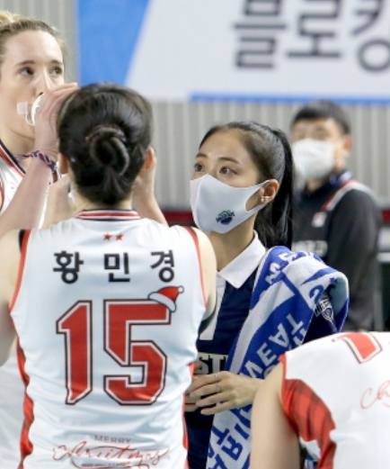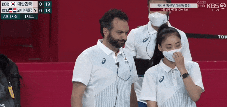 사실 라바리니 감독의 열정 넘치는 말수를 말리고 싶은 사람은 따로 있습니다. 인터뷰는 물론 짧은 작전시간 동안 쉬지 않고 전하는 지시를 전달해야 하는 통역사죠. 외국인 감독이라고 해서 통역을 위한 추가시간을 더 주지 않는 만큼 경기 중 통역사의 역할은 무척 클 수밖에 없는데요. 지난 6월 열린 VNL부터 여자배구 국가대표팀의 통역을 맡은 주인공은 최윤지 씨입니다.
