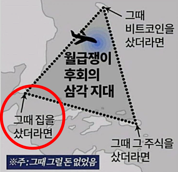 '직장인 후회의 버뮤다 삼각지대'를 아십니까? 요동치는 부동산, 주식, 코인 시장을 보면서 적절한 매수 시기를 놓친 이들의 끝없는 후회를 대변하는 그림인데요. 그중에서도 가장 후회하는 한 가지를 꼽으라면 물론 "그때 집을 샀더라면"이겠죠.