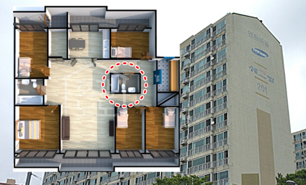 이에 대해 해당 아파트의 실거주자는 "환풍기 매일 켜놓으면 환기 문제없고 방에서 화장실 소리 듣는 것보다 낫다"면서 화장실 배치에 만족감을 드러냈습니다. 실제로 최근에는 환기설비의 성능이 개선되면서 '벽에 붙지 않은 화장실 배치'를 활용하는 경우가 늘어나고 있는데요. 이보다 20여 년이나 앞서 파격적인 화장실 배치를 선보인 건설사는 어디일까?