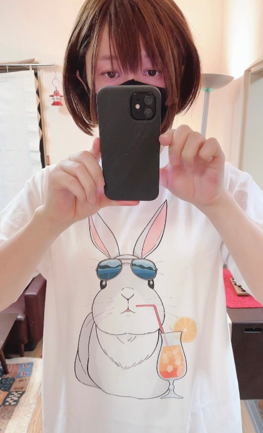결국 코우스케는 직접 모델이 되어 티셔츠 광고사진을 촬영하기로 결정했습니다. 실제로 코우스케는 자신이 디자인한 귀여운 토끼 캐릭터가 그려진 티셔츠를 입고 셀카를 찍어서 SNS에 게재했죠.