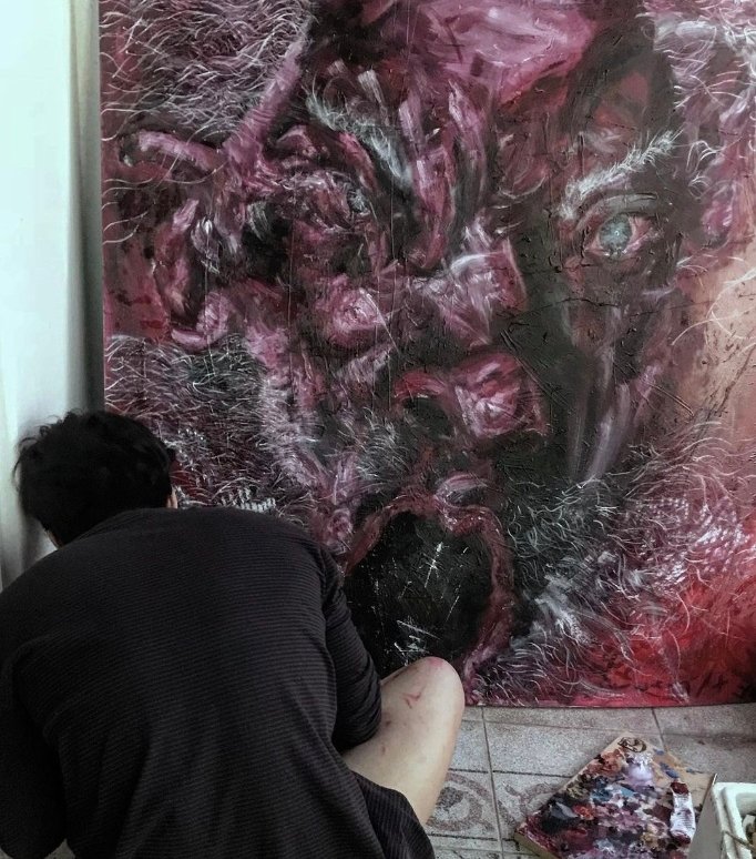 군 복무 중에 '내가 진짜 원하는 것은 무엇인가'에 대해 깊이 생각할 수 있는 계기가 되었다는 육준서는 24살에 전역해서 본격적으로 그림을 그리기 시작했습니다. 미대 진학을 고려하지 않은 것은 아니지만 '당장 그리고 싶다' ,'아트신을 경험해보고 싶다'라는 욕구가 컸던 육준서는 전역 후 곧바로 대형 작품들을 쏟아냈습니다.