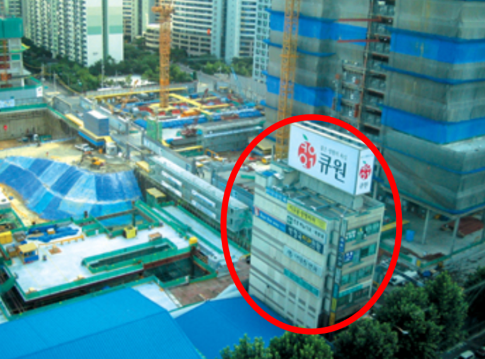 1993년 삼성그룹은 본격적으로 서초동 일대 부지를 매입하기 시작했습니다. 이때 의외의 복병을 만나게 되었는데요. 삼성타운 부지 7600여 평 가운데 약 136평 정도에 달하는 토지 소유자 윤 씨가 토지 매각을 거부한 것.