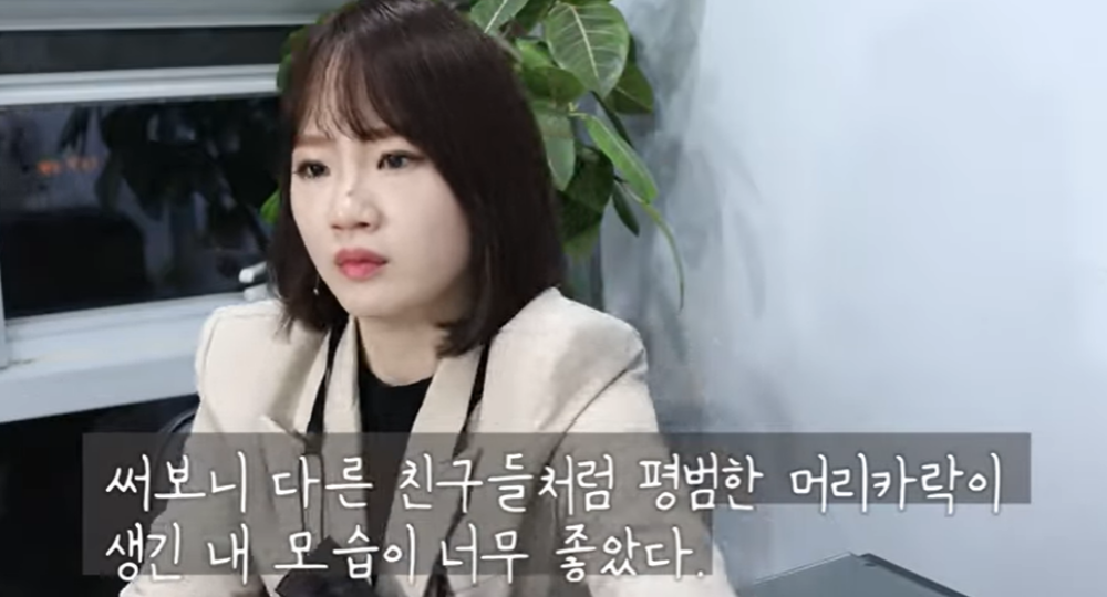 결국 치료법이 전혀 없다는 사실을 알게 된 한솔 씨 부모님은 6살 딸에게 가발을 선물했습니다. 이전까지 외출할 때마다 분신처럼 썼다는 모자 대신 허리까지 오는 긴 생머리 가발을 쓴 한솔 씨는 다른 친구들처럼 평범한 머리카락이 생긴 스스로의 모습이 무척 마음에 들었다고. 그 후로도 '평범한 아이'로 살고 싶어서 계속해서 가발을 쓰고 생활했다는 한솔 씨는 지금까지 24년째 가발을 착용 중입니다.