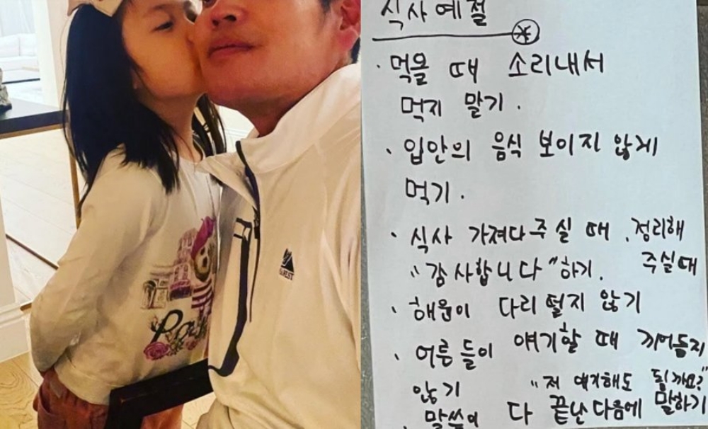 이와 관련해 최근 정용진 부회장의 SNS에는 이란성 쌍둥이 해윤 양과 해준 군에게 부탁하는 '식사예절'이 공개되어 눈길을 끌었습니다. 쌍둥이 자녀들이 직접 쓴 것으로 보이는 글에는 총 6가지 식사 예절 수칙이 적혀 있었는데요. 우선 밥 먹을 때 지켜야 할 것은 '먹을 때 소리 내서 먹기 말기', '입안의 음식 보이지 않게 먹기'였고 이어 '식사 가져다주실 때 정리해 주실 때 '감사합니다'하기', '다리 떨지 않기', '어른들이 얘기할 때 끼어들지 않기', '말씀이 다 끝난 다음에 말하기'가 포함되었습니다.