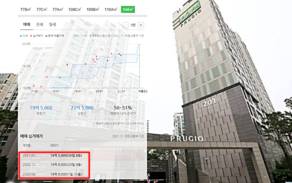 특히 전현무가 거주한 호실의 경우에는 단지 내에서 유일하게 한강 조망이 펼쳐진 대형평수로 희소성이 있었습니다. 덕분에 서울숲 푸르지오 2차는 매입 2년 만인 2018년 17억 원에 팔리며 신고가를 기록했고 이후에도 꾸준히 상승세를 유지하면서 지난해에는 19억 9천만 원에 거래되었습니다. 전현무 역시 지난해 말~올해 초 사이 거래한 것으로 보아 비슷한 금액으로 거래했다면 최소 9억의 시세차익을 본 셈이죠.