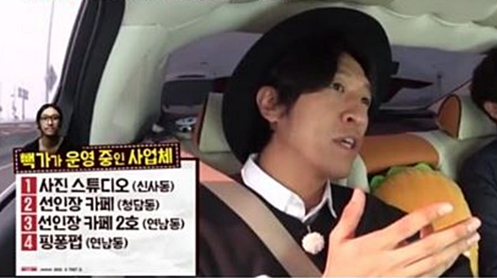 구체적인 매출에 대해 빽가는 2015년 출연한 토크쇼에서 "고깃집 매출이 가장 높다. 한 달에 1억 5000이다. 주말에는 7~800씩 찍는다. 사진작가 수입은 2000만 원 정도 된다. 앨범 재킷, 패션 화보, 광고 사진 등을 찍는다"라고 말했습니다. 또 "핑퐁펍은 월 매출 3000만 원 정도, 선인장 카페는 1500만 원 정도 된다"라고 말했는데, 단순 계산만으로도 당시 빽가의 방송 외 수입은 월 2억 이상이었습니다.