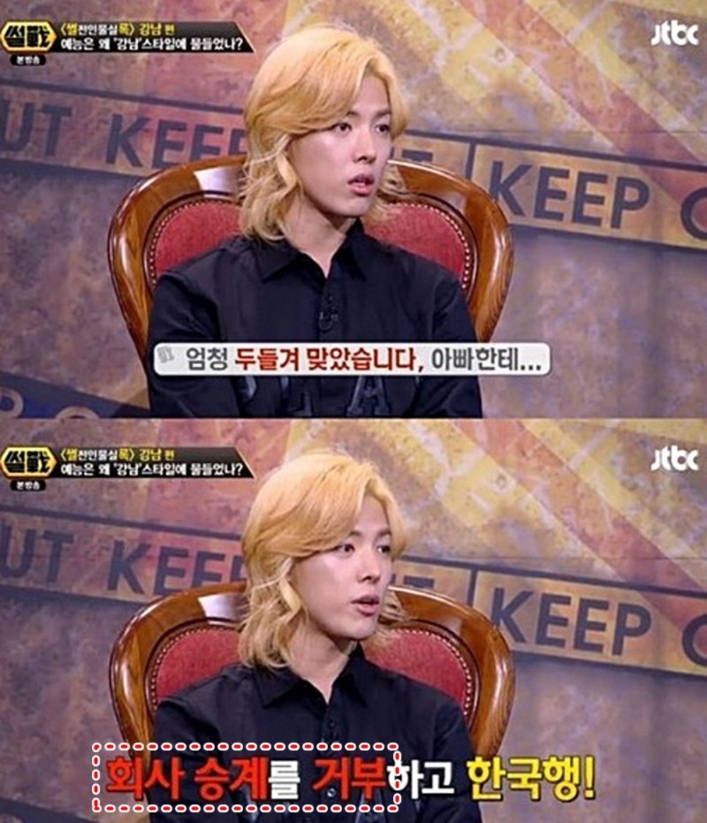 하지만 당시 강남의 부모님은 한국행과 가수 활동 모두를 강하게 반대했습니다. 일본에서 대규모 호텔 사업을 운영 중인 강남의 아버지가 외동아들인 강남에게 회사 승계를 원했기 때문인데요. 강남은 자신의 꿈을 위해 아버지의 허락도 받지 못한 채 한국행을 택했고 준재벌급이라는 일본 본가의 재력과 지원을 포기한 채 가난한 한국 신인 연예인의 삶에 도전했습니다.