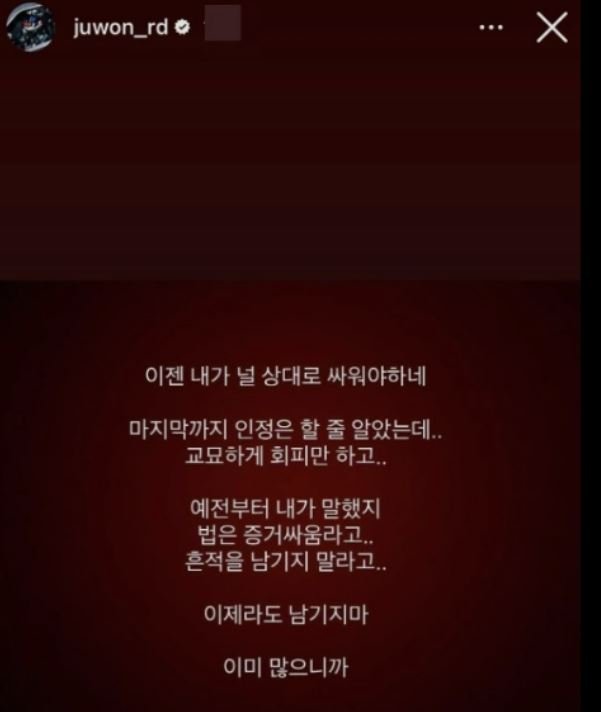 더불어 과거 서주원이 자신을 겨냥한 듯한 글을 SNS에 올린 일도 거론했는데요. 지난해 5월 서주원은 자신의 인스타그램에 "이젠 내가 널 상대로 싸워야 하네. 마지막까지 인정은 할 줄 알았는데"라는 글을 게재했고 같은 시기에 김민영을 언팔하면서 수많은 추측을 만들었습니다. 이에 대해 김민영은 이번 영상에서 "결혼생활 동안 한 점 부끄럼 없이 살았는데 도리어 내가 바람을 피웠다고 추측하게 만드는 저격글을 올렸다"라고 억울함을 토로했습니다.