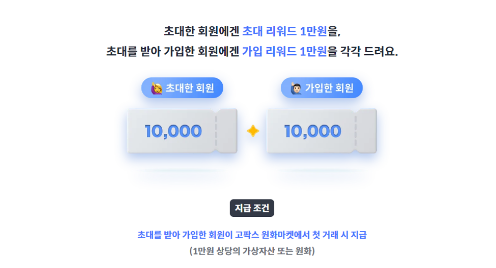고팍스에 가입이 되어 있는 않는 분들은 아래 초대코드로 고팍스에 가입할 경우 1만원 상당의 가상자산 또는 원화를 받을 수 있습니다. 초대코드 없이 가입하면 받을 수가 없습니다.