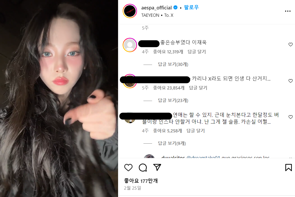 에스파 팬 중 일부가 카리나의 열애에 대해 큰 배신감을 드러내면서 논란이 커졌습니다. 열애 사실이 알려진 후 에스파의 SNS 계정에는 공개적으로 카리나를 질타하는 댓글이 이어졌습니다.