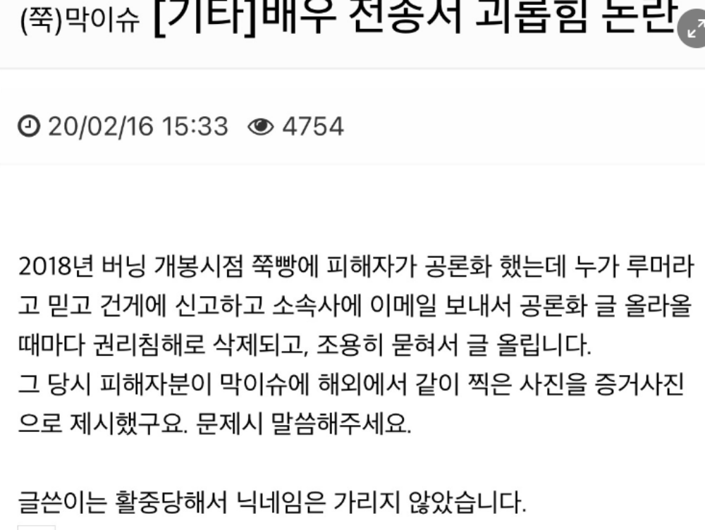 2020년에는 앞서 전종서 관련 폭로글이 삭제되었다는 내용의 게시물이 올라오기도 했죠.