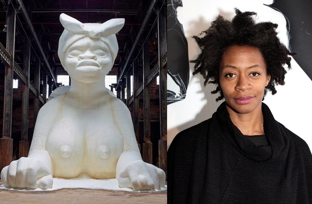 이렇듯 현대 사회가 지니고 있는 수많은 담론들을 한 편의 그림자 연극을 보여주듯 전달하는 카라 워커가 2014년에는 조금 특별한 방식으로 작품을 표현했는데요. 뉴욕의 오래된 설탕 공장에 10.5m 크기의 설탕으로 만든 거대한 흑인 여성 조각을 설치한 것입니다.