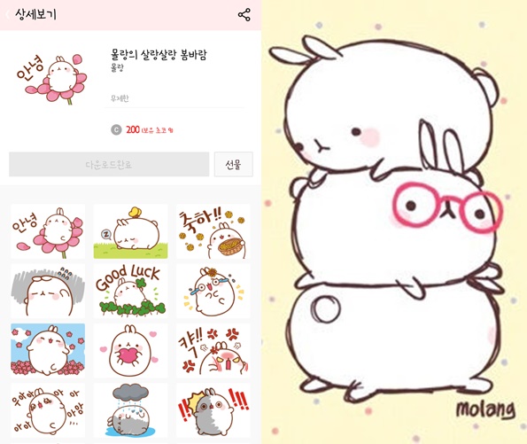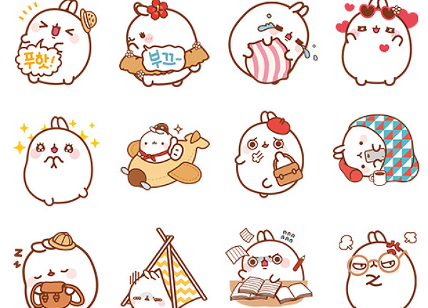 이후 몰랑이는 카카오톡 이모티콘 시장 초기에 입점하면서 크게 성장했고 다양한 굿즈로 만들어져 현재까지도 큰 사랑을 받고 있습니다.