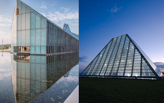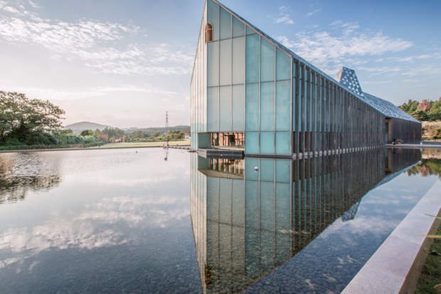본태 박물관 역시 안도 다다오의 트레이드마크인 노출 콘크리트 건물이 눈에 띕니다. 또 두 개의 전시관을 잇는 공간은 한국의 전통 담벼락과 좁은 골목, 가느다란 냇물과 다리로 구성해 동양적인 아름다움을 선보였습니다. 더불어 제주 산방산을 배경으로 은은한 호숫가에 위치한 산책로는 자연과의 조화를 중시하는 안도 다다오의 설계 방식을 고스란히 드러내고 있습니다.