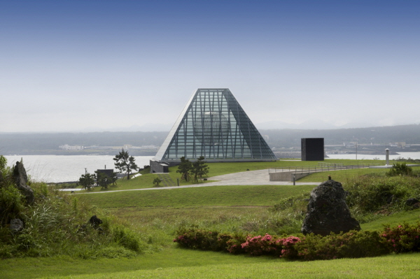 섭지코지에 위치한 유민 미술관과 글라스 하우스 역시 안도 다다오의 작품인데요. 두 건축물은 서로 마주 보고 설계되어 섭지코지의 건축명소가 되었습니다. 유민 미술관은 국내 최초로 아르누보 공예예술품을 만날 수 있는 아르누보 미술관인데요. 원래는 '지니어스로사이'라는 이름의 안도 다다오 건축물로 유명했던 곳을 덴마크 건축가인 요한 칼슨이 전시 설계를 맡아 미술관으로 재개장한 것입니다. 요한 칼슨은 전시 설계 당시 안도 다다오 지니어스로사이의 본질을 해치지 않았다고 자부했는데요. 덕분에 유민 미술관에서는 여전히 노출 콘크리트 건물과 삼다 정원의 조화로운 아름다움을 느낄 수 있습니다. 또한 벽면 프레임으로 보이는 성산 일출봉의 풍광도 빼놓을 수 없는 핫스폿이지요.