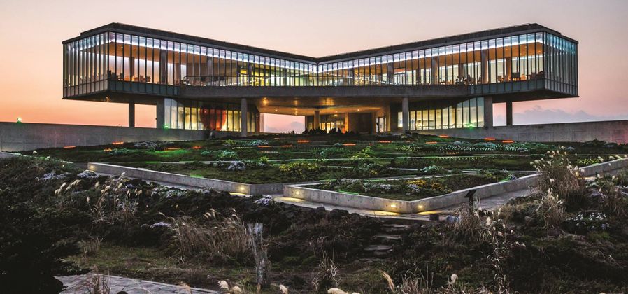 포도호텔은 올망졸망 모여있는 단층 건물의 모습이 마치 포도송이 같다고 해서 붙여진 이름인데요. 세계적인 건축가이자 재일교포인 이타미 준이 설계한 곳으로도 유명합니다. 이타미 준은 재일 한국인으로 태어나 한국에서는 일본인으로, 일본에서는 한국인으로 늘 경계에 있는 느낌이었다고 하는데요. 대학 시절, 자신의 정체성을 찾고자 한국을 찾아 한국의 민화와 자연의 아름다움에 관심을 갖게 되었다고 합니다. 덕분에 그의 작품에는 자연 본연의 모습을 존중하는 자연주의 철학이 묻어있지요.