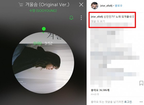 또한 정경호는 지난 2018년 12월 자신의 인스타그램에 수영의 신곡 '겨울 숨'의 음악사이트 캡처 사진과 함께 '신인인가? 노래되게 좋네'라는 글을 남기며 귀여운 애정행각을 보여주었습니다.