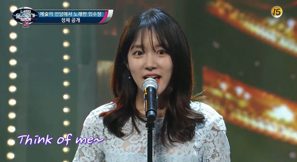 이어진 무대에서 출연자는 뮤지컬 오페라의 유령의 'Think of me'를 열창했는데요. 가녀린 체구에서 나오는 맑고 청아한 목소리에 클론을 비롯한 출연자들과 방청객들은 충격에 빠졌습니다.