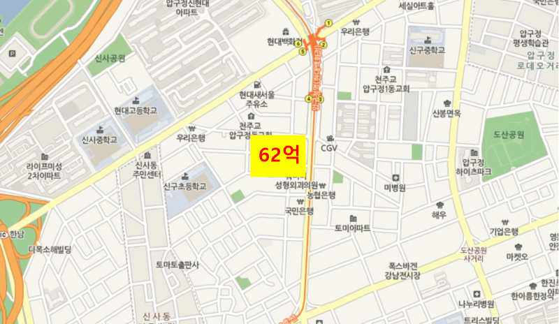 황정음 건물은 입지조건부터 꽤 좋은 곳으로 알려져 있는데요. 압구정역에서 300m가량 떨어진 역세권에 자리 잡고 있으면서 인근에 먹자 상권이 활성화되어 있어 임차인들의 선호도가 높은 지역이기도 합니다. 또한 코너 건물인데다 2013년 리모델링을 완료해 외관이 크게 눈에 띄는 장점도 가지고 있지요. 사실 압구정역 상권은 1990년대 초중반 이미 한차례 부동산 열기가 지나간 곳인데요. 이후 홍대 입구, 성수동 등에 대표 상권 자리를 빼앗기면서 하락세를 보였습니다. 하지만 여전히 부유층이 많이 거주하는 곳으로 다시 부동산 투자자들의 눈길을 사로잡고 있는데요. 특히 아파트 재건축 등을 기대하는 분위기도 있다고 하네요.