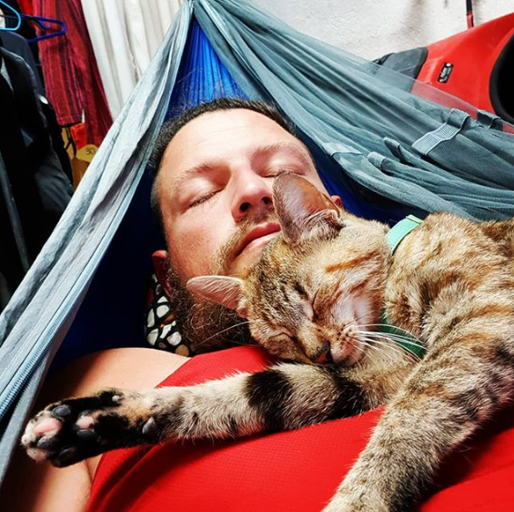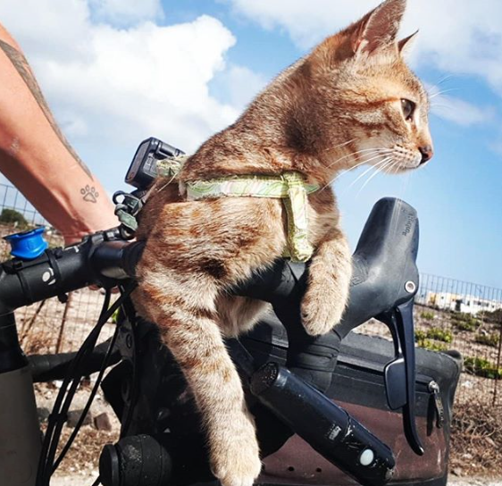 이후 벨기에-프랑스-스위스-이탈리아를 거쳐 연말에는 발칸 지역으로 넘어갔지요. 그러던 중 니콜슨이 자전거로 보스니아에서 몬테네그로 사이 국경을 지나갈 무렵 어디선가 고양이의 울음소리가 들려왔는데요. 작은 새끼 길고양이가 니콜슨의 자전거를 쫓아오고 있었던 것입니다. 니콜슨은 당시 고양이의 울음소리가 자신의 마음을 울려 차마 두고 갈 수 없었다고 하는데요. 이때부터 니콜슨은 고양이의 집사로 임명된 것입니다.