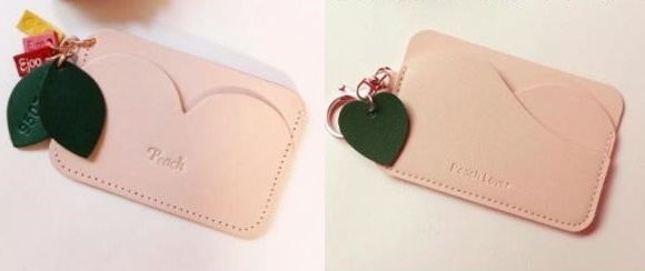 디자이너는 2016년 말 디자인 특허를 출원한 자신의 카드지갑과 다이소의 제품을 사진으로 비교해 설명하기도 했는데요. 하트와 나뭇잎을 활용한 과일 콘셉트부터 전체적인 형태와 느낌, 그리고 카드 투입구의 하트모티브 형태과 나뭇잎 모양의 장식까지 동일한 라인의 제품으로 착각할 정도로 유사하다고 전했습니다.