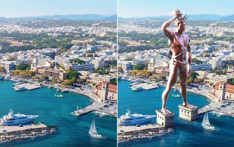 로도스의 거상은 BC 292년 에게해에 있는 로도스섬 시민들이 만드라키온 항구에 세운 것으로 알려진 30m 높이의 거대 동상인데요. 마케도니아와의 전쟁 승리를 기념해 수호신인 헬리오스, 태양의 신을 형상화 한 것입니다. 하지만 동상이 세워진 지 56년 만인 기원전 227년 강진으로 인해 무너져 현재는 그 모습을 볼 수 없는데요. 지난 2015년 동상을 복원하려는 시도가 있긴 했으나 예산 문제 등으로 실행되지 못했습니다.