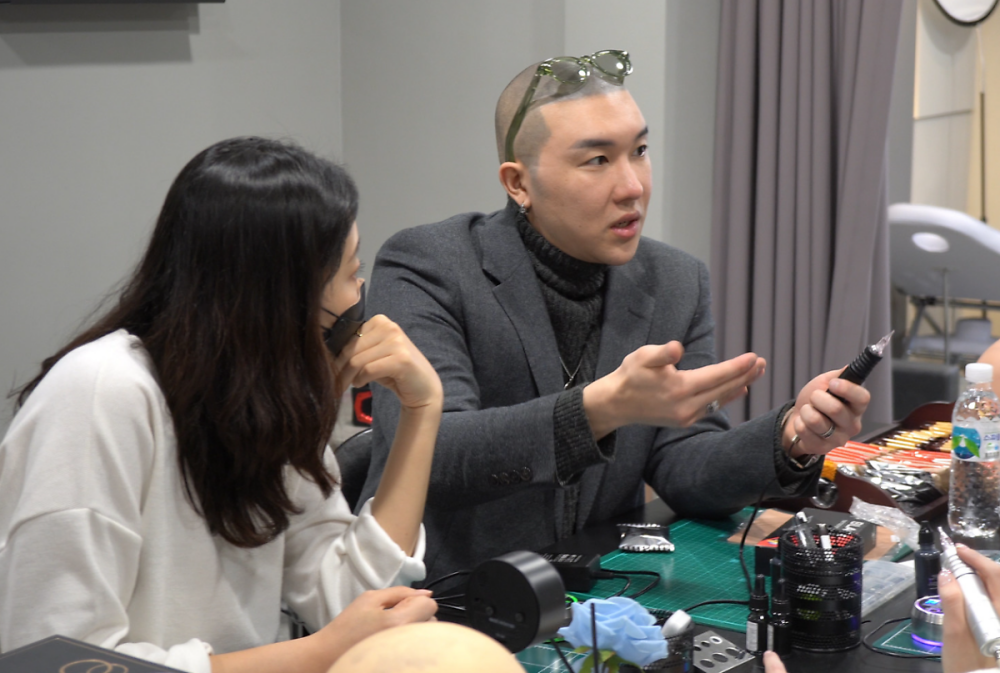 당시에 대해 박 대표는 "그때 나는 정말 간절함이 있었다. 이 기술로 내가 흙수저를 탈출하고 잘 살아야겠다고 생각했다"면서 "고객들에게 기술의 좋은 점을 설명하려면 내가 먼저 머리를 밀어야겠다고 판단했다"라고 설명했습니다. 그리고 박 대표는 실제로 삭발을 감행하고 자신의 두피에 두피문신 디자인 작업을 했습니다.