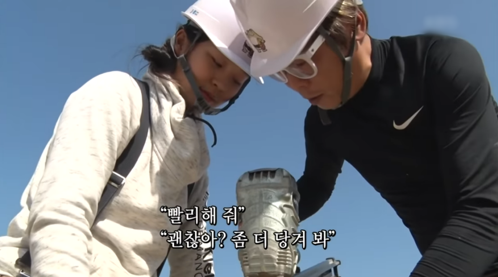 덕분에 두 사람은 같은 목조주택 건설 팀에 속해 한 달 차이 선후배로 함께 근무 중입니다. 두 사람이 소속된 건설팀의 팀장은 처음 아진 양을 맞이했을 당시에 대해 "아빠를 따라와서 일을 배우겠다고 하길래 장난으로 듣고 그러라고 했는데 계속 따라나오더라. 진심이라는 걸 알았다"라고 회상했습니다. 일반적으로 다른 직장을 다니다가 30대 후반~40대가 되어서야 목조주택에 관심을 가지고 찾아오는 것에 반해 18살 소녀 아진 양의 도전은 생소하면서도 놀라웠던 것.