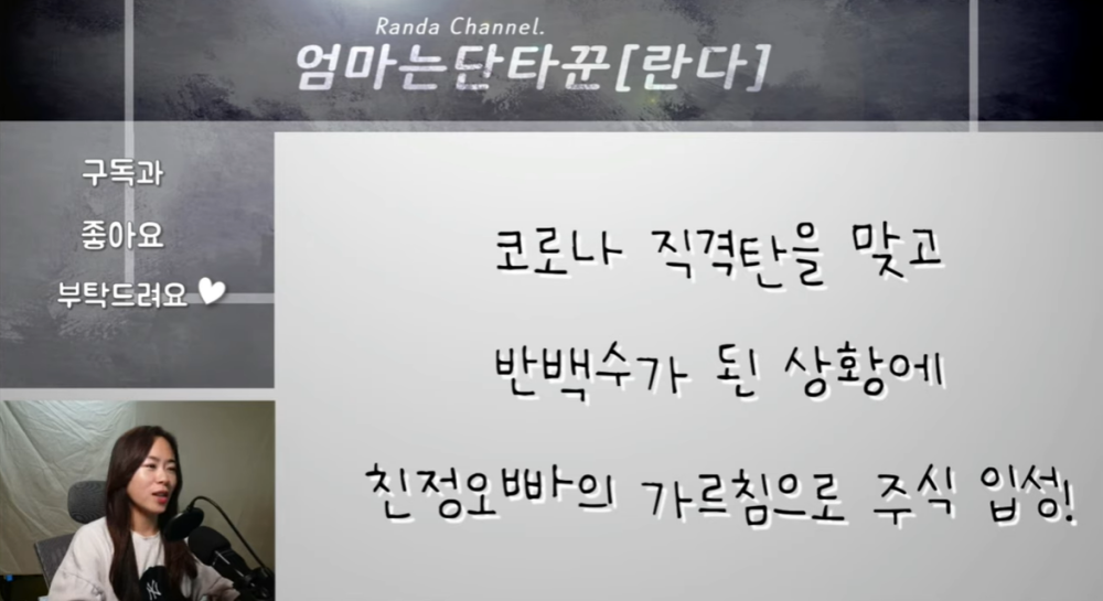 코로나 직격탄을 맞고 본의 아니게 백수생활을 시작했다는 주부 배한나 씨는 친정 오빠의 권유로 지난해 9월부터 주식투자에 뛰어들었습니다. 주식에 대해 전혀 모르던 배 씨는 친정 오빠가 알려준 방식만을 정석으로 알고 종가매매단타를 시작했습니다.