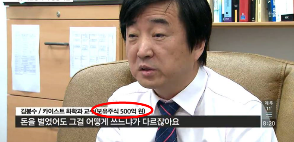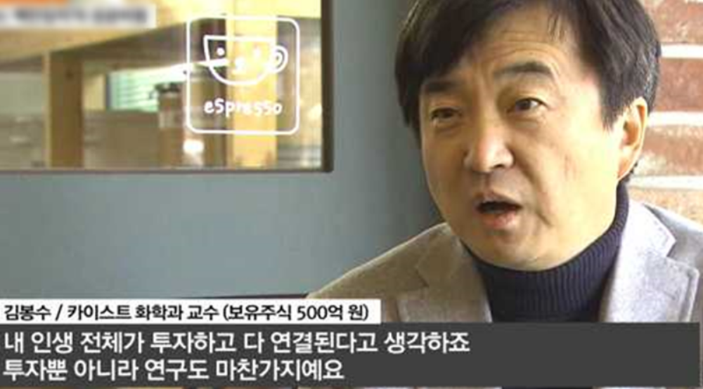 2004년 4억 원으로 시작한 주식투자가 불과 11년 만에 500억 원 이상으로 늘었다는 투자고수는 김봉수 카이스트 명예교수입니다. 59년생인 김봉수 교수는 서울대 화학과 출신으로 UC버클리에서 박사학위를 취득해 1984년 인제대 화학과 교수를 시작으로 경북대 화학교육과를 거쳐 카이스트 화학과에서 학생들을 가르치는 일을 이어왔습니다.