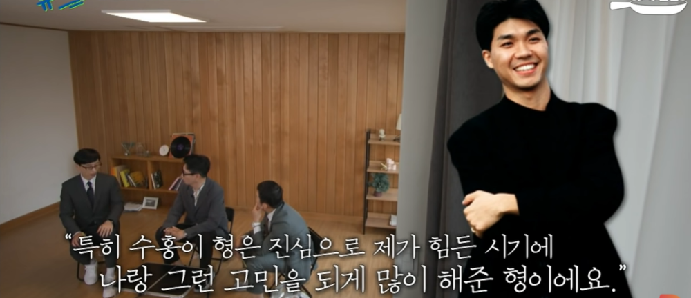 그러면서 당시 박수홍이 "형, 나중에 누가 제일 잘 될 거 같아?"라고 물었을 때 지석진이 "글쎄, 누구 같아?"라고 되묻자 박수홍이 "재석이야"라고 확신했다고 말했습니다. 이에 유재석은 "맞다. 수홍이 형이 그랬다"면서 "사실 형들과 다 친하지만 특히 수홍이 형은 진심으로 내가 힘든 시기에 나랑 그런 고민을 되게 많이 해준 형이다"라고 남다른 애정과 고마움을 전했습니다.