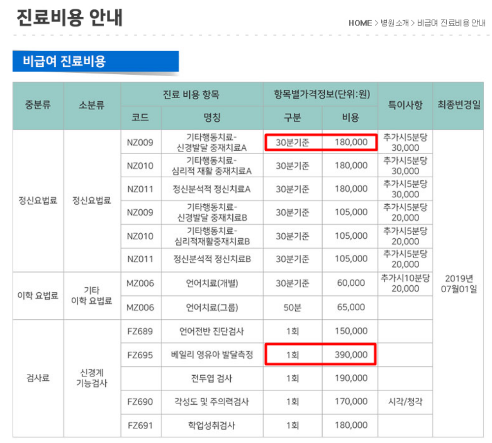 또 어렵게 진료예약을 잡고 상담을 받더라도 "5분에 42,500원이라 초진을 보고 나니 상담비만 50만 원이 나왔다"면서 그 외 검사비도 100만 원이라는 후기가 눈길을 끕니다. 실제로 오 박사가 운영하는 병원의 홈페이지에 공개된 진료비용을 보면 '정신요법'으로 표기된 상담비용이 30분에 최소 105.000원부터이고 검사비는 15만 원부터 시작됩니다.